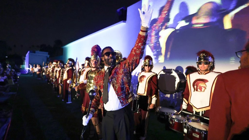 Ben Stiller was on hand to greet a sold-out crowd attending a “Zoolander” screening at Hollywood Cemetery Saturday night — and he was joined by “Severance” star Tramell Tillman, who showed up with the University of Southern California’s marching band in tow.