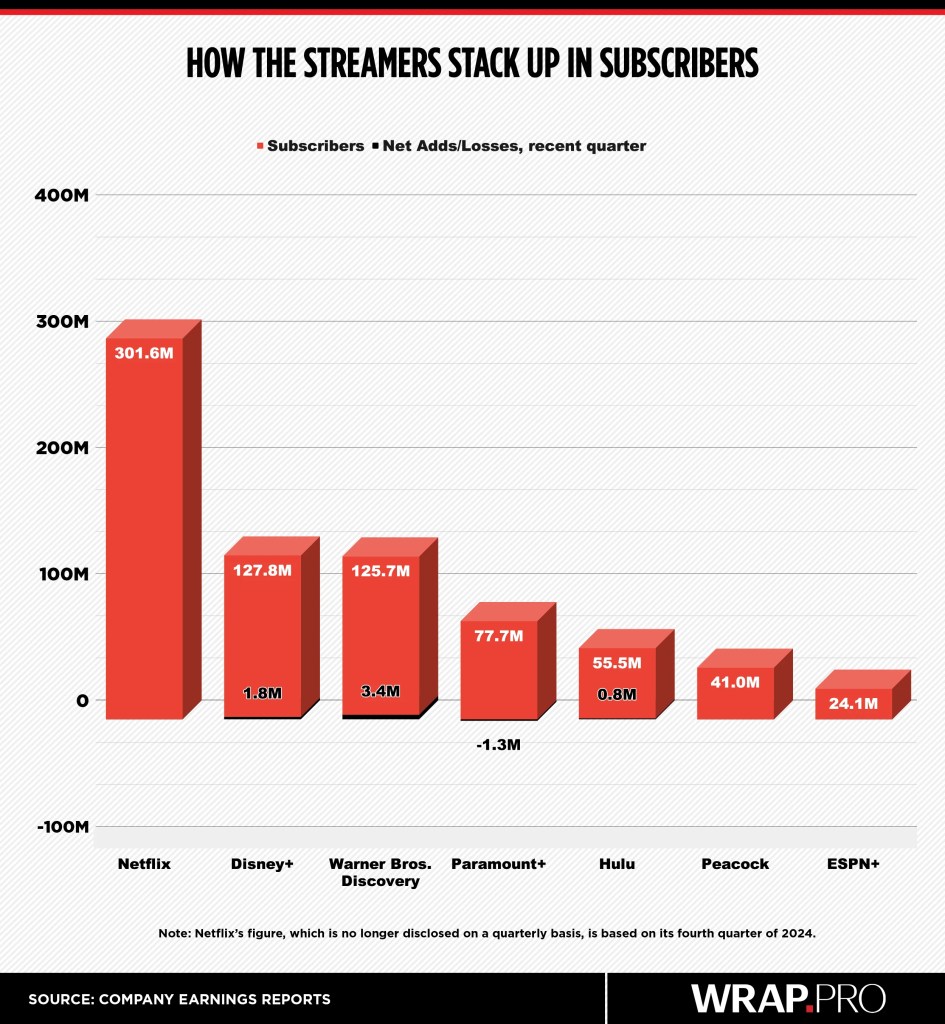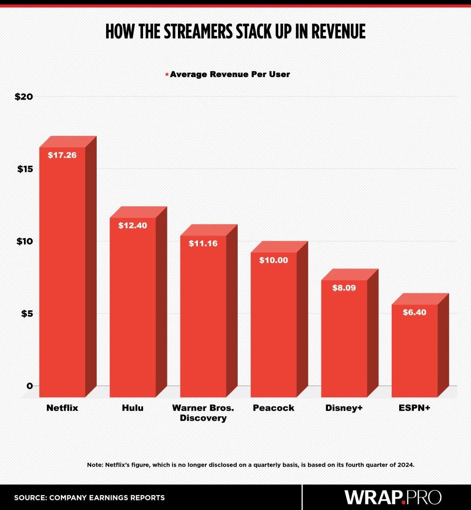 Even though it led this trend last year, Netflix’s lead over its legacy media competitors on the two metrics remains wide. The streaming king last reported 301.63 million subscribers and ARPU in the U.S. and Canada of $17.26 in the fourth quarter.