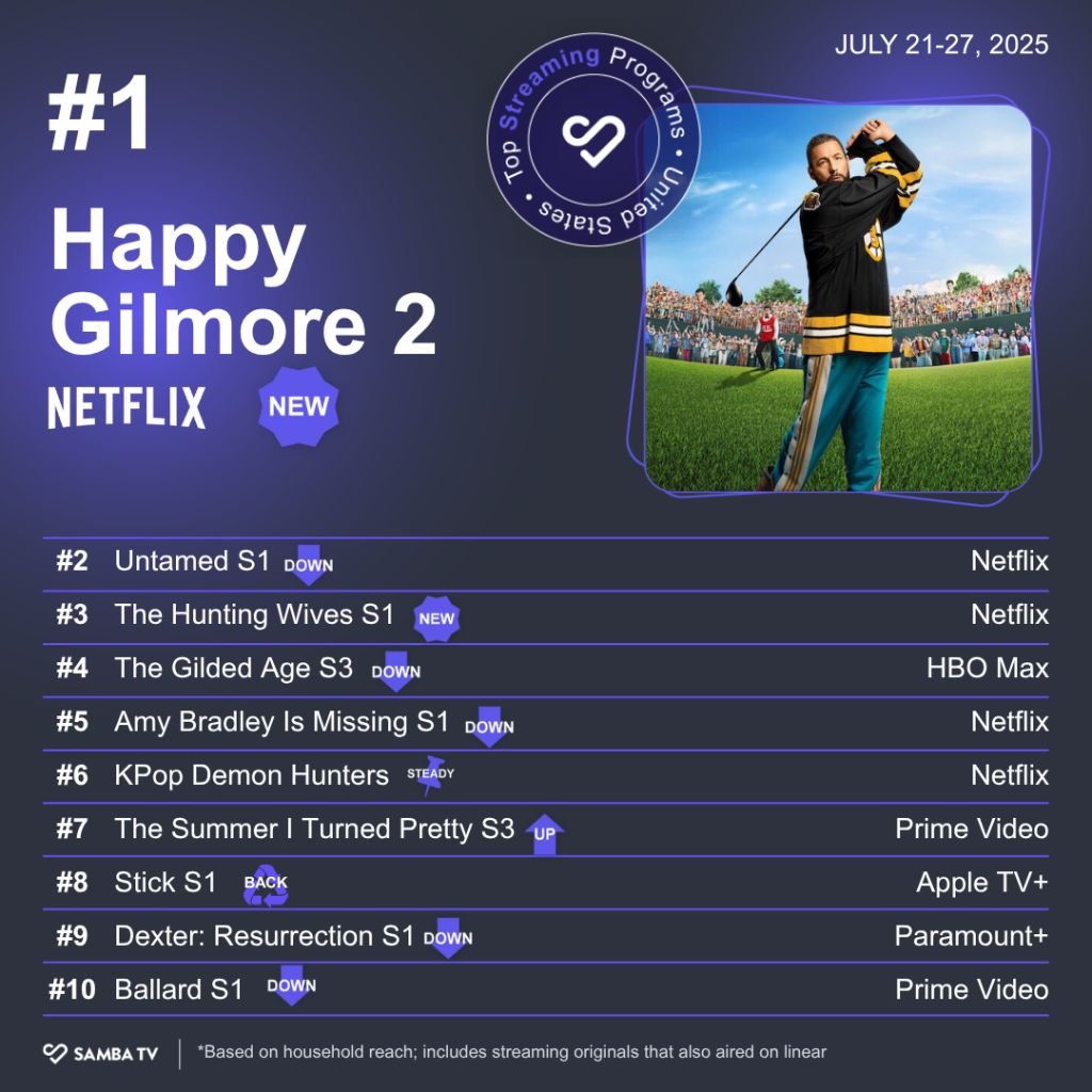The Wrap Report provides an exclusive first look at the most-watched movies and TV series from the past week across both streaming and linear television, sourced from viewership trends collected from Samba TV’s panel of more than 3 million households, balanced to the U.S. Census.