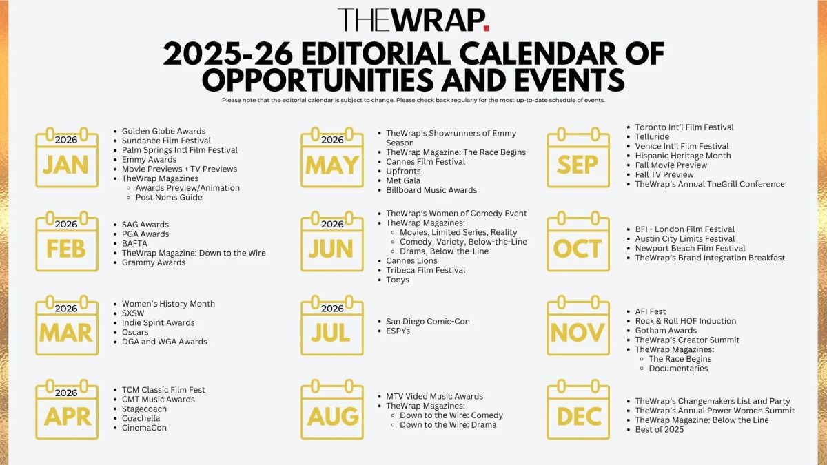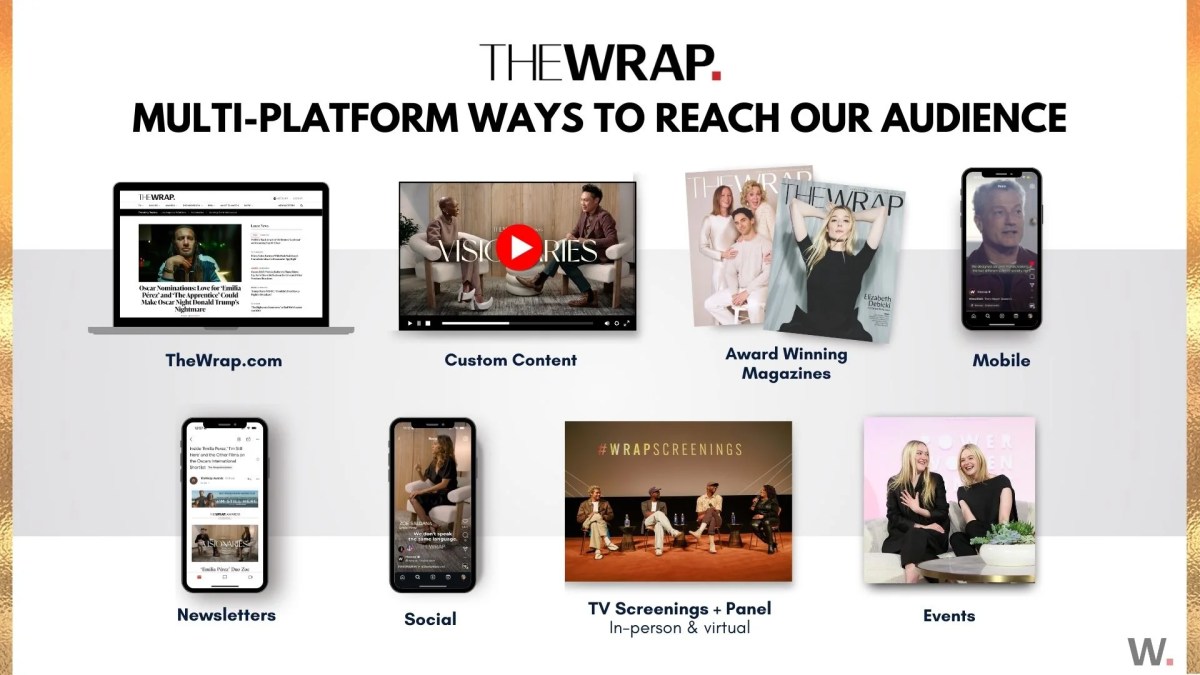 Our editorial coverage aligns with the biggest moments in film, TV, streaming, and awards season. Leverage TheWrap’s reach to amplify your message around these high-traffic periods. Don’t miss out on exclusive opportunities and events designed to connect your business with industry leaders and influencers.